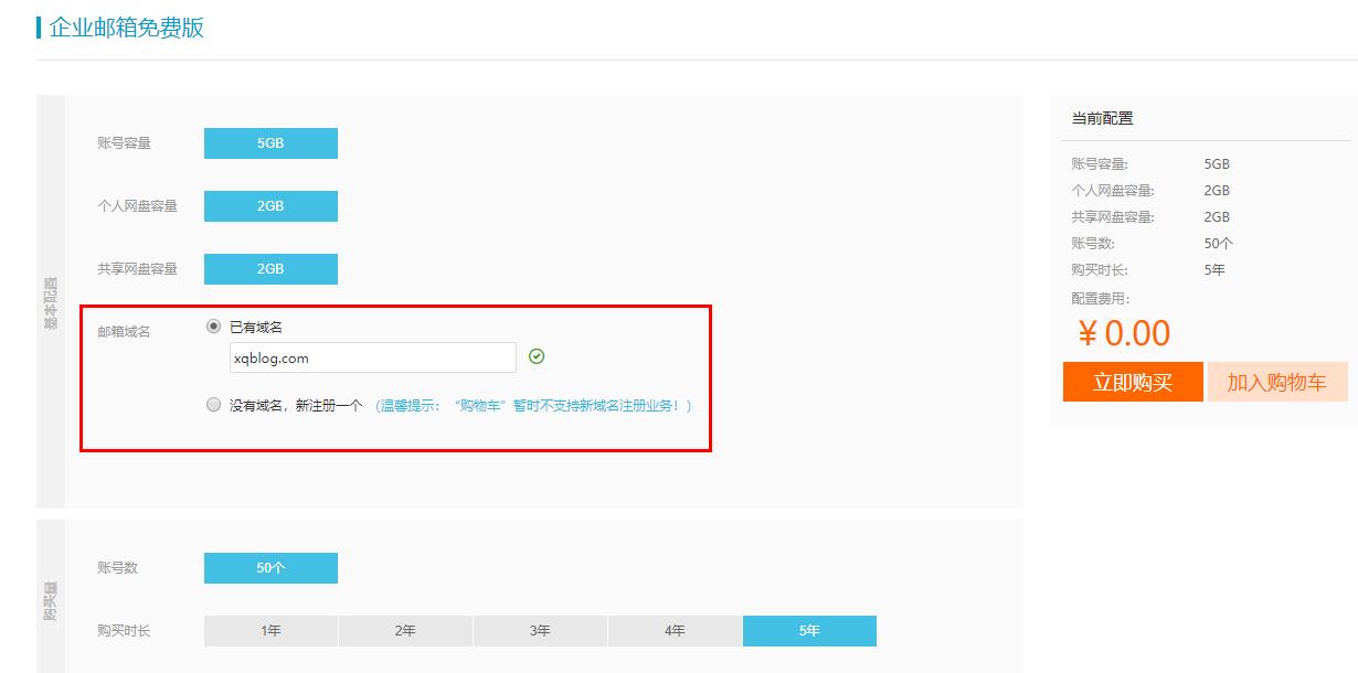 注意事项:已经注册过免费邮箱的用户无法重新选择,只能老老实实的一年一续,免费的!