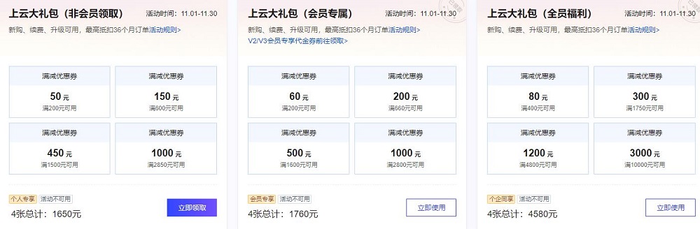 4、11.11 代金券礼包,活动时间:11.01-11.30