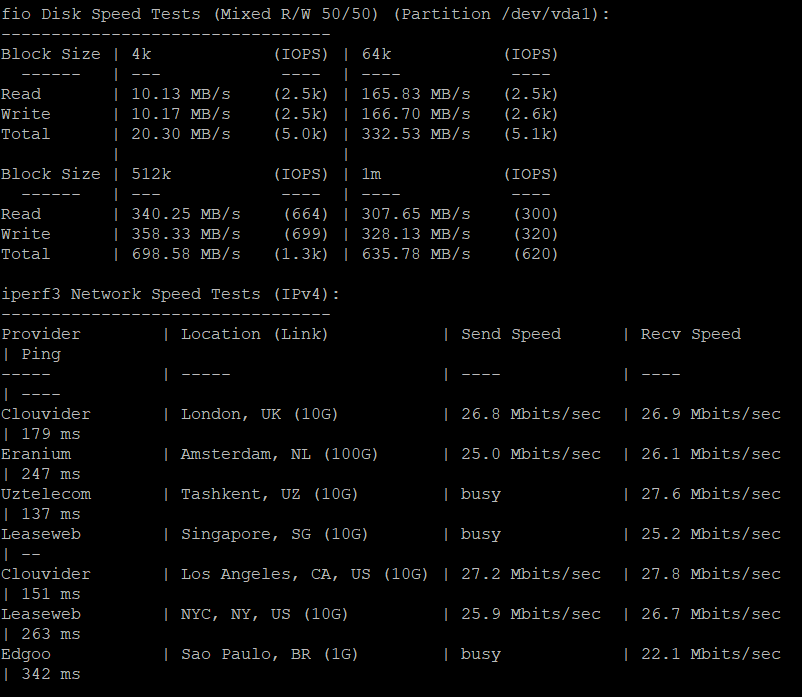 2、FIO数据脚本读写测试与iperf3 Network Speed Tests