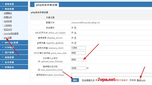一定要记住,设置好之后点击确定,一定要点击后面的重启WEB,不然设置的不会生效哦!这是小七个人比较喜欢采用的一种方法,适合数据库不大的时候使用的!
