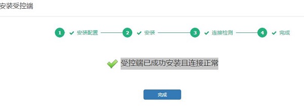 点击进行下一步,进入连接检测环节,提示:受控端已成功安装且连接正常,就算是完成了!
